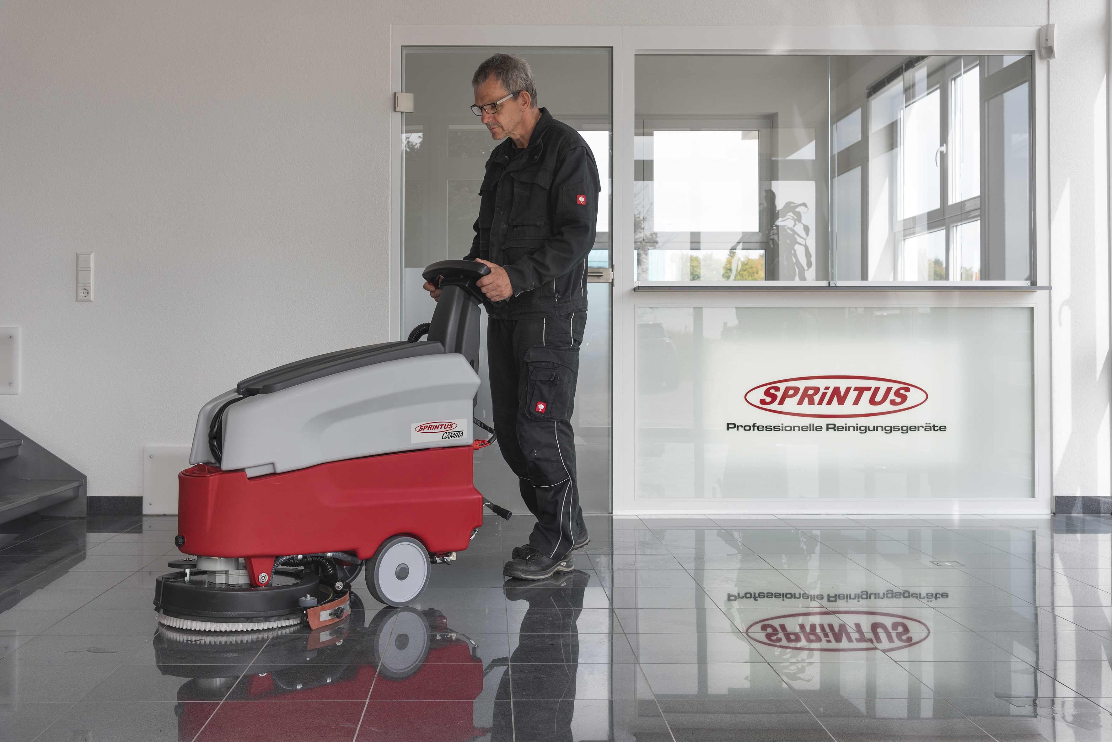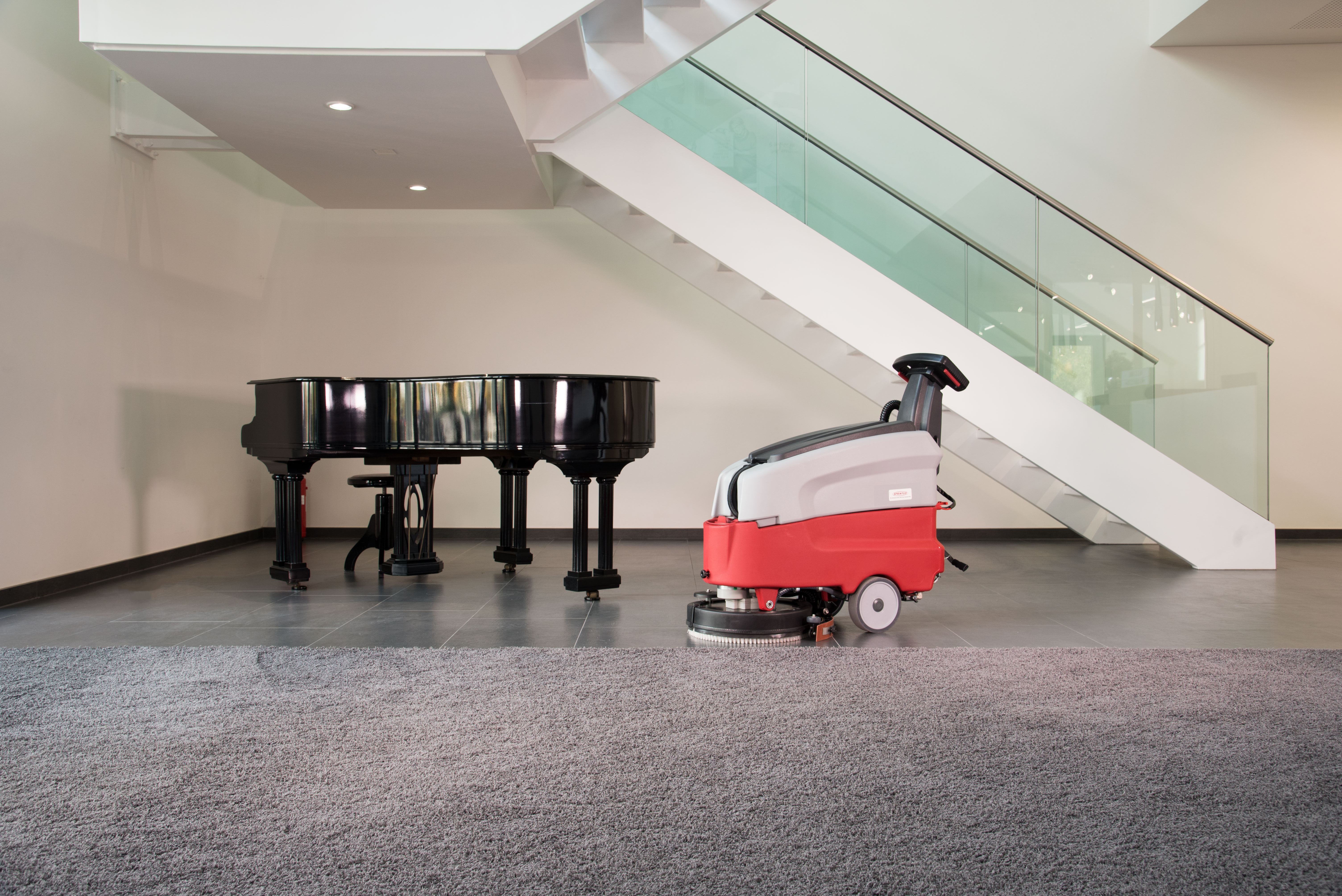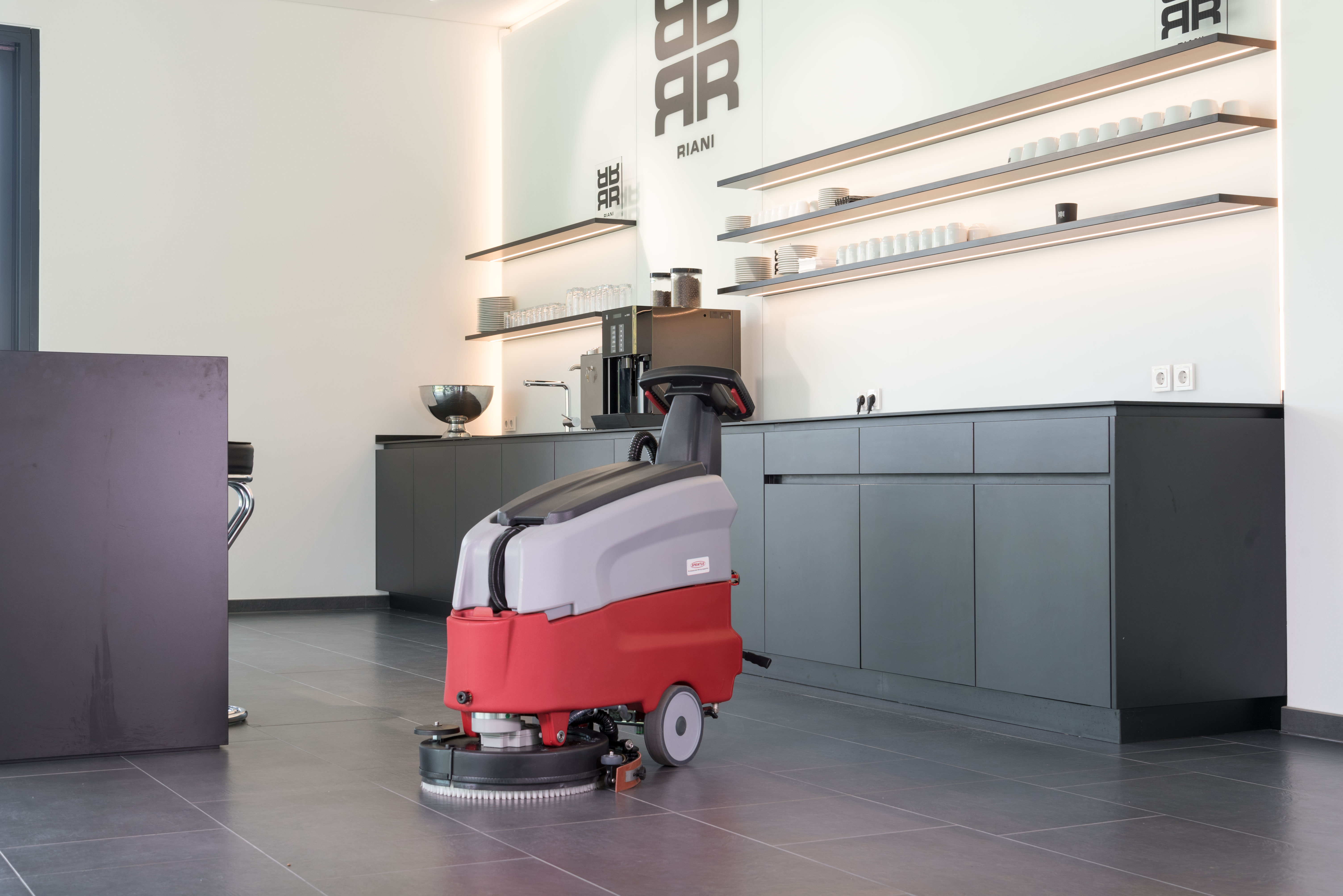 Batteriebetriebene, 32 Liter, 24 V Scheuersaugmaschine. Ideal für mittelgroße Flächen bis zu einer Größe von 1.600 m².