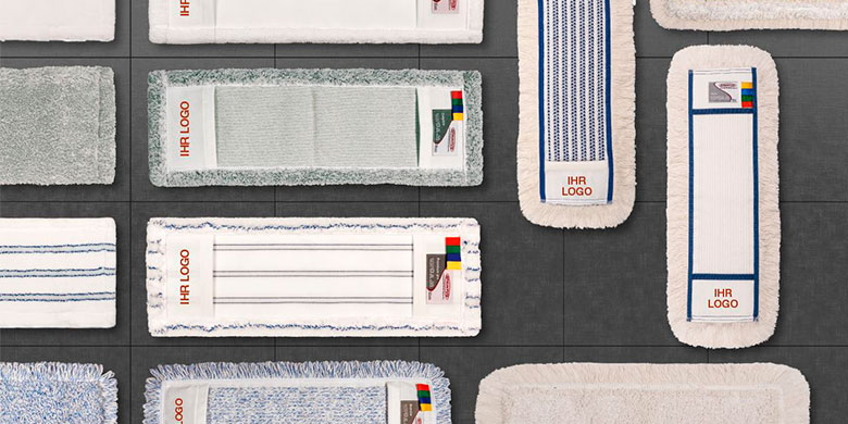Bereits bei Abnahme ab einem Karton können Sie aus einer Auswahl von Mikrofaser- und Baumwollbezügen frei wählen und individuell mit Ihrem Logo bedrucken. In diesem speziellen Druckverfahren wird Ihr Firmenlogo direkt in die Fasern eingebunden und ist kratz- und waschfest.