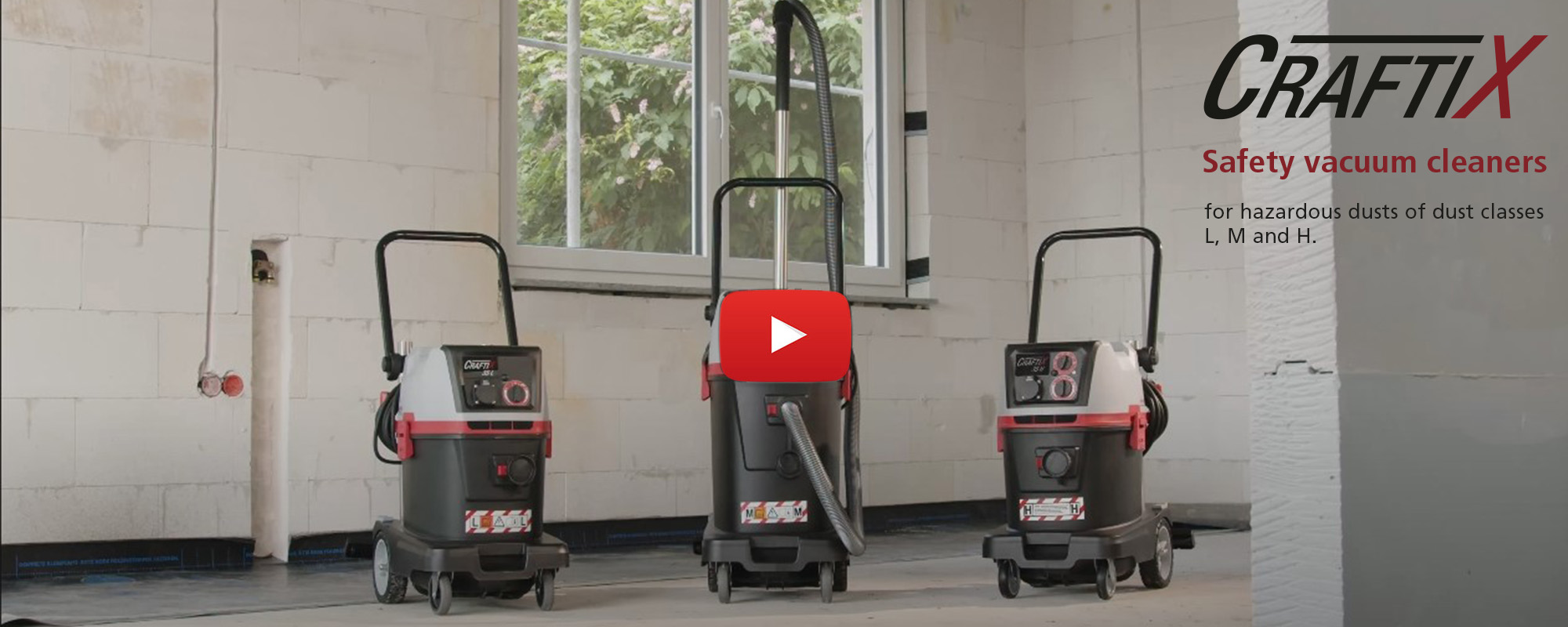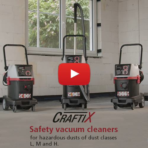 For an efficient control of dusts in dust class L, M and H inclusive asbestos dusts, we offer you the CraftiX model series with a total of six safety vacuum cleaners. In all dust classes, you have the choice between a model with a container volume of 35 and 50 litres.