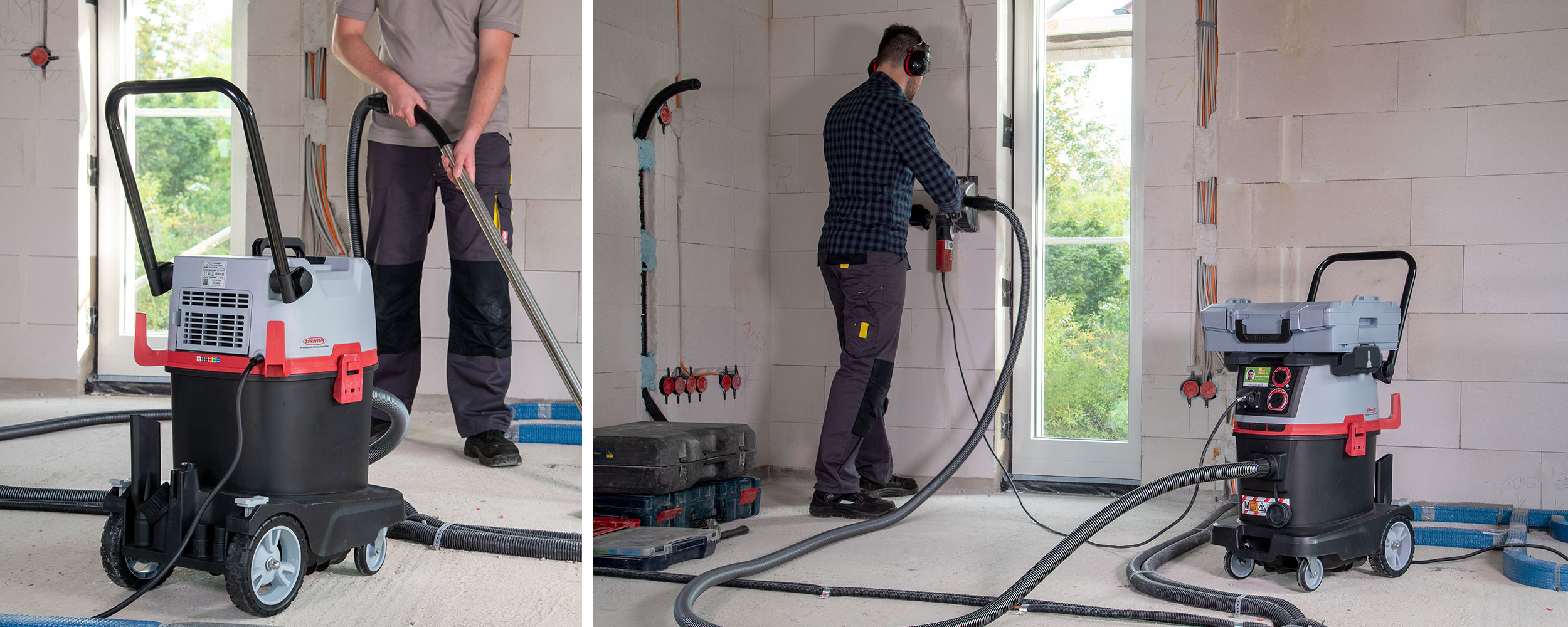 The new certified safety vacuum cleaners by SPRiNTUS for dust classes L, M and H vacuum where hazardous dust is produced. Directly on the power tool. And all this with automatic filter cleaning with a consistently high level of suction power.