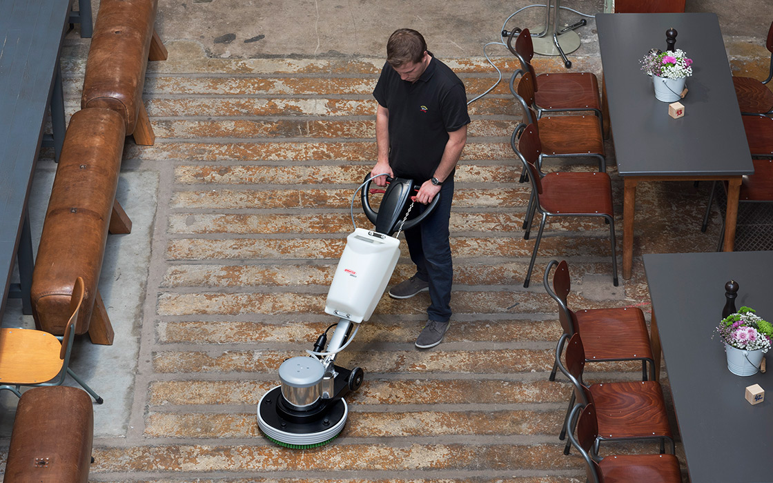 The new Zeus single disc floor cleaner is a masterpiece of ergonomics and innovation for the challenging, professional cleaning of hard surfaces and textile floor coverings.