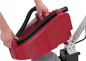 The standard convenient plus point: The fresh water tank, equipped with a stretch hose, can be simply topped up with water directly at the tap. With its racy and powerful 1,500 Watt motor and the maintenance-free steel planetary gearing with 175 rpm, the Zeus is extremely powerful and yet incredibly quiet. It is easy to operate and also enables inexperienced users to work safely, in an energy-efficient and fatigue-free manner. Added to this, it is simple to transport and space-saving when stored, because the shaft can simply be folded down fully.