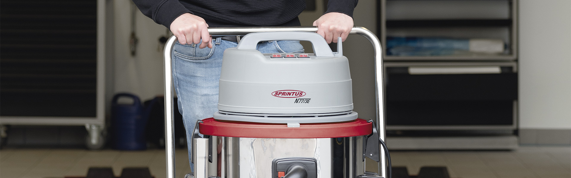 The professional vacuum with a fine dust filter cartridge, fleece filter basket, and complete accessories. Extremely high performance and easily adaptable due to its three individually adjustable turbines. The N 77/3 E is an especially robust stainless steel wet- and dry-surface vacuum cleaner and was conceptualized for excessive use. The convenient container tilting function enables fast and handy emptying. The sturdy undercarriage with metal casters and large rubber-coated wheels ensures problem-free work, even on sensitive surfaces. Also available is an optional 650 mm gangway nozzle for wet surfaces, which can be mounted on the undercarriage of the N 77/3 E and operated from the backside of the device.