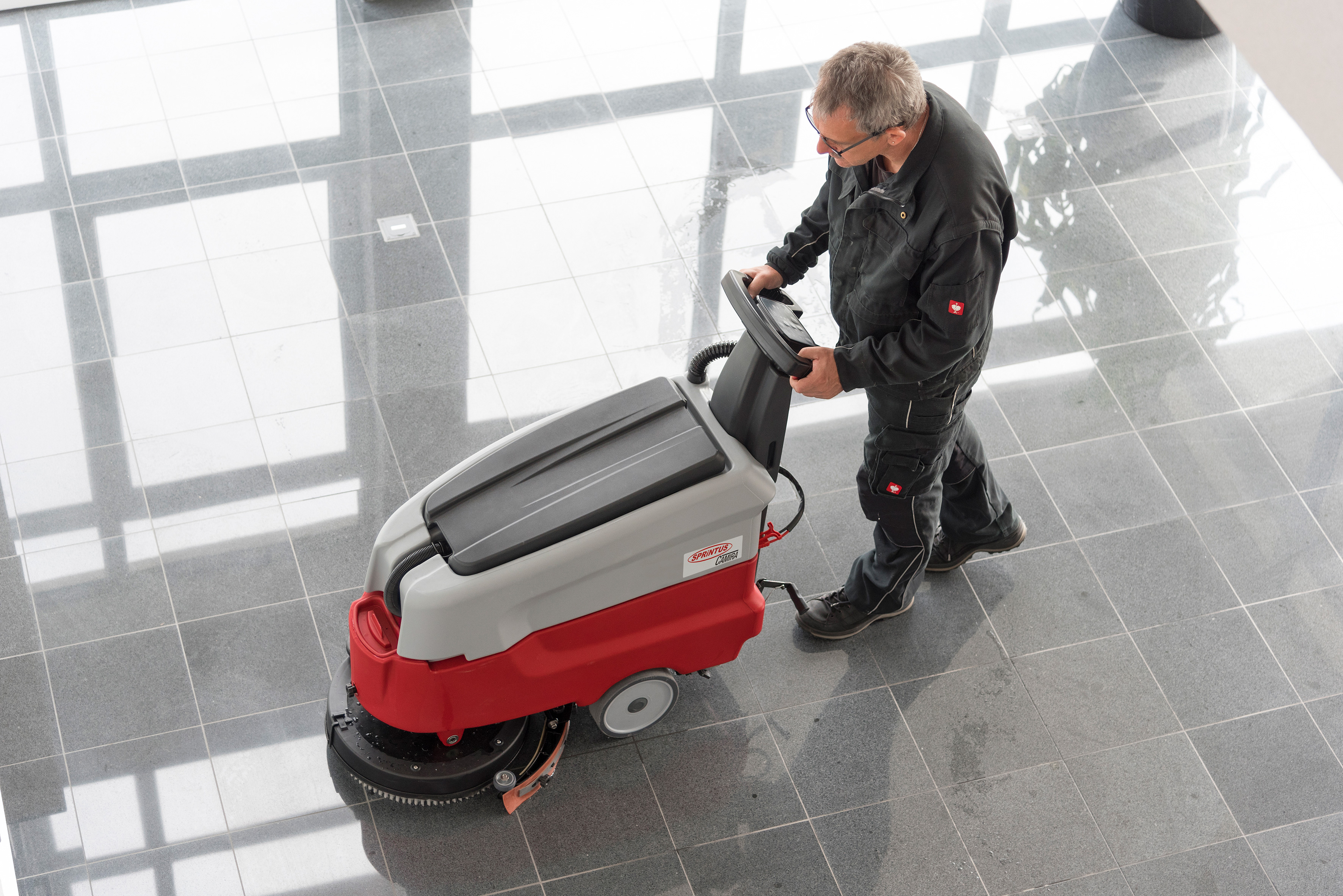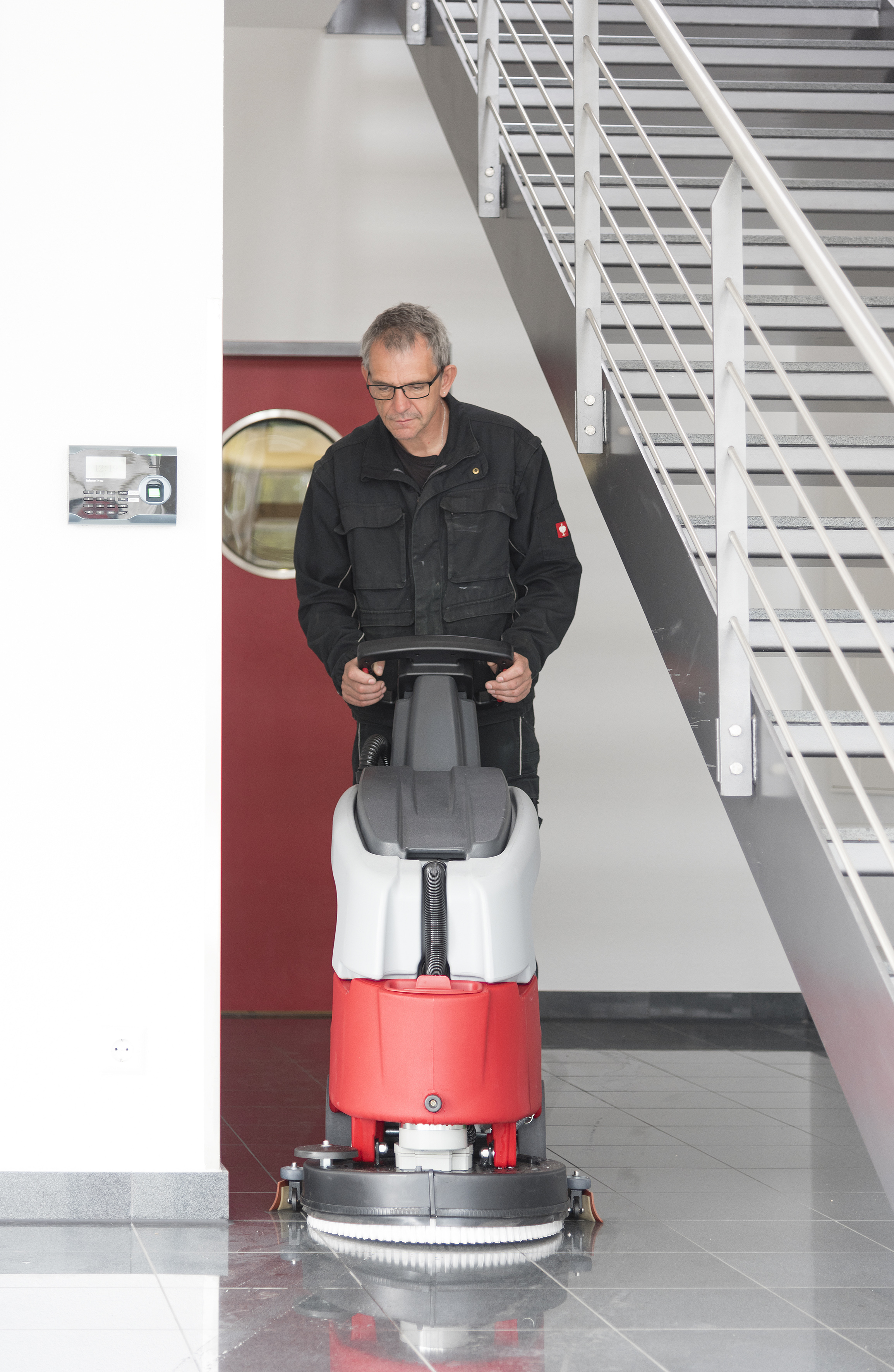 Autolaveuse, 32 Liter, 24 V, alimentée par batterie. Idéale pour des surfaces moyennes d'une taille jusqu'a 1.600 m².