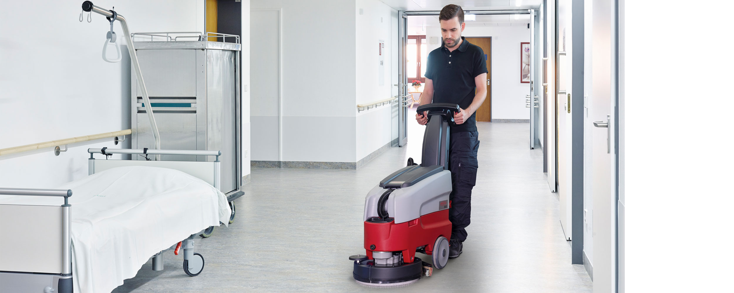 Autolaveuse, 15 Liter, 24V, alimentée par batterie. Pour des surfaces de petite et moyenne taille. Rendement surfacique d'environ 1.260 m²/h.